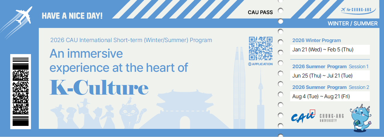 Chung Ang University ประเทศสาธารณรัฐเกาหลี ประชาสัมพันธ์โครงการแลกเปลี่ยน 2026 CAU International Winter Program กำหนดจัดขึ้นระหว่างวันที่ 21 มกราคม – 5 กุมภาพันธ์ 2569 กิจกรรมจัดขึ้นเพื่อส่งเสริมการเรียนรู้วัฒนธรรมเกาหลีผ่านการเต้น K-Pop อุตสาหกรรมวงการบันเทิง และภาษาเกาหลี รวมไปถึงโอกาสสร้างเครือข่ายความหลากหลายทางวัฒนธรรมกับเพื่อนนักศึกษาต่างชาติ โดยได้รับการยกเว้นค่าธรรมเนียมการสมัคร 60 USD ส่วนค่าใช้จ่ายที่เหลือได้แก่ Tuition Fee (1,500 USD) ค่าที่พัก ค่าตั๋วเครื่องบินและเบี้ยเลี้ยงนักศึกษาต้องรับผิดชอบด้วยตนเอง ผู้สนใจสามารถศึกษารายละเอียดโครงการฯได้ที่ https://ird.oou.cmu.ac.th/2026-cau-international-winter-program/ หรือ https://oia.cau.ac.kr/